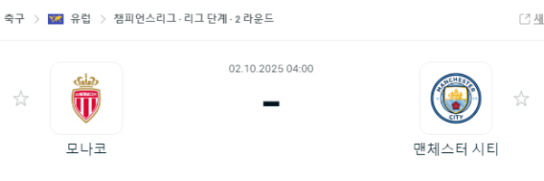 10월 2일 챔피언스리그 모나코 vs 맨시티 중계 안내