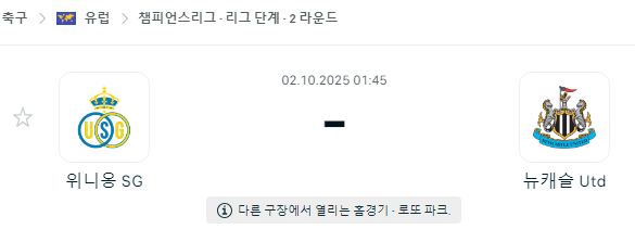 10월 2일 챔피언스리그 위니옹 vs 뉴캐슬 중계 안내