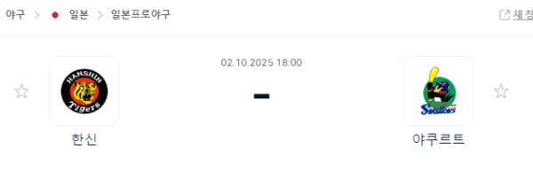 10월 2일 NPB 한신 타이거즈 vs 야쿠르트 스왈로즈 생중계