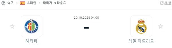 10월 20일 라리가 헤타페 vs 레알 마드리드 경기 중계 안내