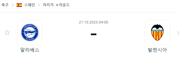 10월 21일 라리가 알라베스 vs 발렌시아 생중계