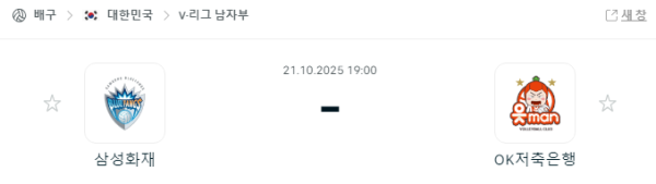 10월 21일 삼성화재 블루팡스 vs OK 저축은행 읏맨 — 실시간 중계 안내