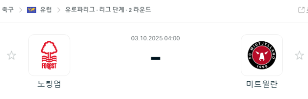 전술적 완성도만 놓고 보면 미트윌란이 유리하다. 하지만 누적된 피로와 코펜하겐 더비를 앞둔 일정은 변수다. 반대로 노팅엄은 핵심 자원을 아끼며 홈에서 철저히 준비했고, 경기 후반 체력 우위를 바탕으로 깁스-화이트와 허드슨-오도이가 승부처를 장악할 가능성이 크다. 전술적 미완성에도 불구하고, 홈 이점과 체력적 우세를 앞세운 포레스트의 승리가 예상된다.
