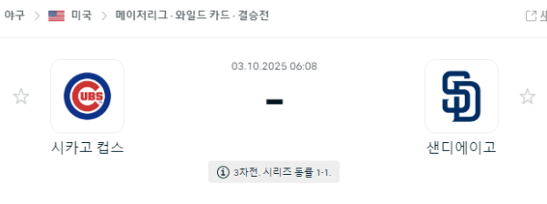 마운드 안정감, 불펜 뎁스, 최근 타선 흐름까지 종합하면 시카고 컵스가 확실히 우세하다. 샌디에이고가 변수로 작용할 여지가 적어, 이번 경기는 컵스의 승리 가능성이 높다.