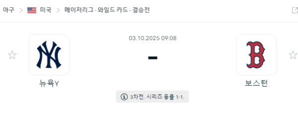 10월 3일 MLB 뉴욕 양키스 vs 보스턴 레드삭스 중계