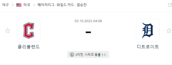 10월 3일 MLB 클리블랜드 가디언스 vs 디트로이트 타이거즈 중계