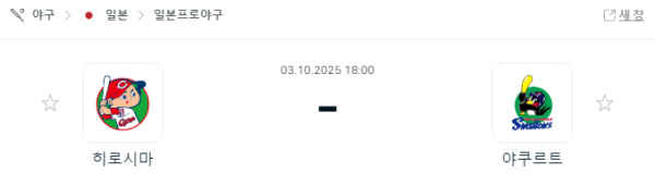10월 3일 NPB 히로시마-야쿠르트, 진짜 치고받는 경기 온다