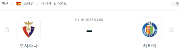 10월 4일 라리가는 오사수나와 헤타페의 격돌