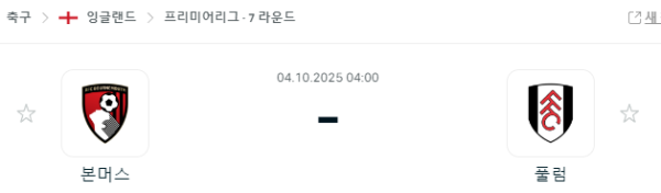 10월 4일 EPL 생중계: 본머스 vs 풀럼