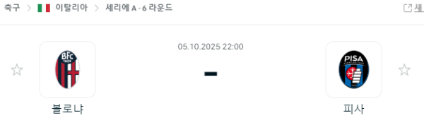 10월 5일 세리에A: 볼로냐 vs 피사 중계 안내