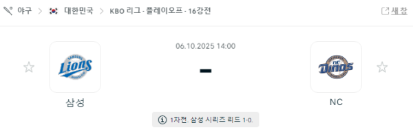 10월 6일 KBO 중계: 삼성, 대구 홈에서 NC와 가을야구 첫 승부