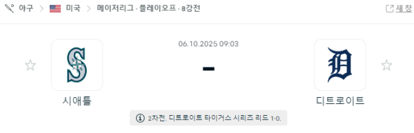 10월 6일 MLB 중계: 시애틀, 디트로이트 원정서 반등 노린다
