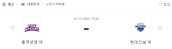 10/22 여자배구 흥국생명-현대건설 생중계 안내