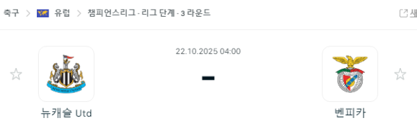 10/22 -챔피언스리그 빅매치: 뉴캐슬 대 벤피카