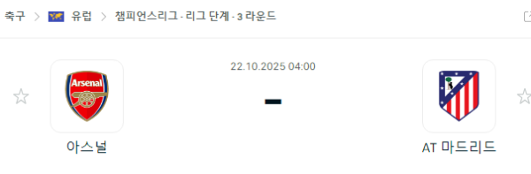 10/22 챔피언스리그 빅매치: 아스날 vs AT마드리드