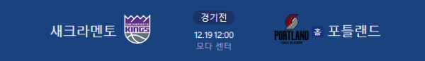 | 핵심 포인트 | **'차포 떼인 양 팀의 대결'**입니다. 새크라멘토는 라빈과 사보니스가, 포틀랜드는 릴라드와 홀리데이가 빠진 상태입니다. 결국 아브디야(POR)와 데로잔(SAC)의 에이스 화력 대결과 골밑의 클링언(POR)을 새크라멘토가 어떻게 제어할지가 관건입니다. |