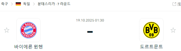 2025.10. 19 분데스리가 바이에른 뮌헨 도르트문트 중계 안내
