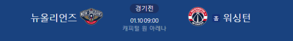 2026년 1월 10일 09:00 (KST) | NBA 정규리그 워싱턴 위저즈 vs 뉴올리언즈 펠리컨스 분석