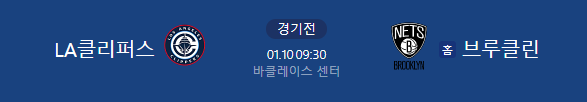 2026년 1월 10일 09:30 (KST) | NBA 정규리그 브루클린 네츠 vs LA 클리퍼스 분석