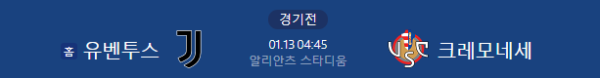 2026년 1월 13일 04:45 (KST) | 이탈리아 세리에 A 20라운드 유벤투스 FC vs 크레모네세 분석