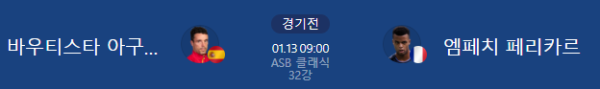 2026년 1월 13일 (KST) | ATP 250 오클랜드 ASB 클래식 32강 로베르토 바우티스타 아구트 vs 조반니 음페치 페리카르 분석