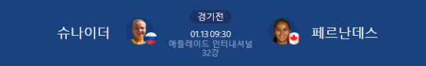 2026년 1월 13일 (KST) | WTA 500 애들레이드 인터내셔널 32강 다이애나 슈나이더 vs 레이라 페르난데스 분석
