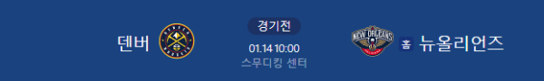 2026년 1월 14일 10:00 (KST) | NBA 정규 시즌 덴버 너게츠 vs 뉴올리언스 펠리컨스 분석