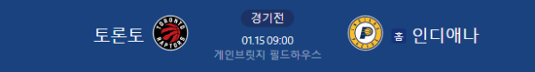 2026년 1월 15일 09:00 (KST) | NBA 정규시즌 토론토 랩터스 vs 인디애나 페이서스 분석