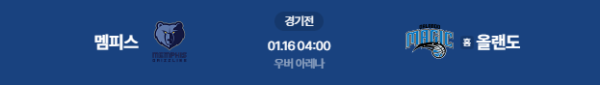 2026년 1월 16일 04:00 (KST) | NBA 정규시즌 멤피스 그리즐리스 vs 올랜도 매직 분석