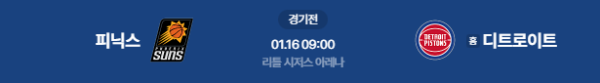 2026년 1월 16일 09:00 (KST) | NBA 정규시즌 피닉스 선즈 vs 디트로이트 피스톤즈 분석