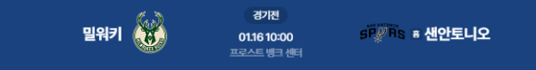 2026년 1월 16일 10:00 (KST) | NBA 정규시즌 밀워키 벅스 vs 샌안토니오 스퍼스 분석