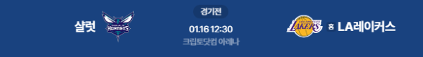 2026년 1월 16일 12:30 (KST) | NBA 정규시즌 샬럿 호니츠 vs LA 레이커스 분석
