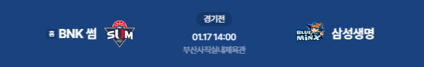 2026년 1월 17일 14:00 (KST) | WKBL 정규리그 BNK 썸 vs 삼성생명 분석