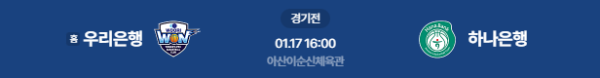 2026년 1월 17일 16:00 (KST) | WKBL 정규리그 아산 우리은행 vs 부천 하나은행 분석