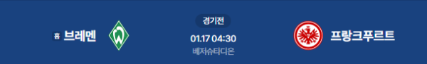 2026년 1월 17일 (KST) | 분데스리가 17라운드 베르더 브레멘 vs 아인트라흐트 프랑크푸르트 분석