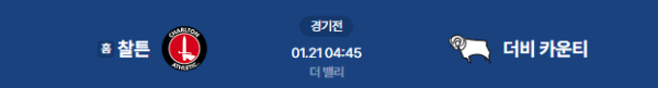 2026년 1월 21일 04:45 (KST) | 잉글랜드 챔피언십 28라운드 찰튼 vs 더비 카운티 분석