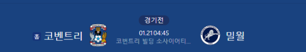 2026년 1월 21일 04:45 (KST) | 잉글랜드 챔피언십 28라운드 코벤트리 시티 vs 밀월 분석