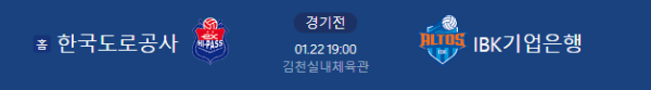 2026년 1월 22일 19:00 (KST) | 도드람 2025-2026 V-리그 여자부 한국도로공사 vs IBK기업은행 분석