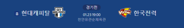 2026년 1월 23일 19:00 (KST) | V-리그 남자부 현대캐피탈 vs 한국전력 분석