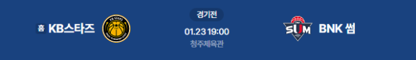2026년 1월 23일 19:00 (KST) | WKBL 정규리그 청주 KB스타즈 vs 부산 BNK 썸 분석