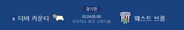 2026년 1월 24일 05:00 (KST) | 잉글랜드 챔피언십 29라운드 더비 카운티 vs 웨스트 브롬 분석