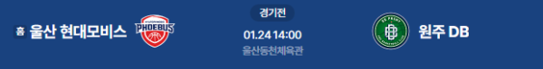 2026년 1월 24일 14:00 (KST) | KBL 울산 현대모비스 vs 원주 DB 경기 분석