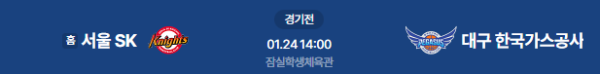 2026년 1월 24일 14:00 (KST) | KBL 정규리그 서울 SK 나이츠 vs 대구 한국가스공사 페가수스 분석