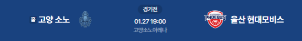 2026년 1월 27일 19:00 (KST) | KBL 고양 소노 스카이거너스 vs 울산 현대모비스 피버스 분석