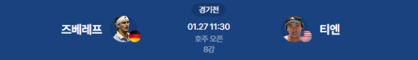 2026년 1월 27일 (KST) | WTA 호주 오픈 8강 알렉산더 즈베레프 vs 러너 티엔 분석