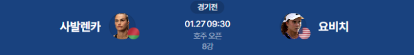 2026년 1월 27일 (KST) | WTA 호주 오픈 8강 아리나 사발렌카 vs 이바 요비치 분석