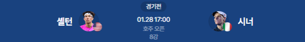 2026년 1월 28일 (KST) | ATP 호주 오픈 8강 벤 셸턴 vs 야닉 시너 분석
