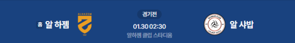 2026년 1월 30일 02:30 (KST) | 사우디 프로리그 알 하젬 vs 알 샤밥 분석