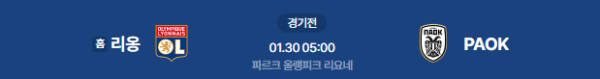 2026년 1월 30일 05:00 (KST) | 유로파리그 올림피크 리옹 vs PAOK 분석