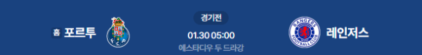 2026년 1월 30일 05:00 (KST) | 유로파리그 FC 포르투 vs 레인저스 FC 분석